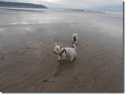 We then drove over to meet Jo and Paul in a cafe before having a wander around the Village. I never seem to find any bargains but Jo always comes away with bags of clothes! We bought some sandwiches for lunch and drove to Northam Burrows at Westward Ho! where we parked to eat them. It was then time to walk the dogs on the beach …